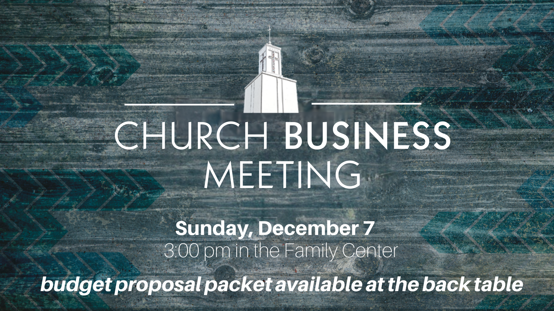 Our annual Church Business Meeting will be THIS Sunday, December 7