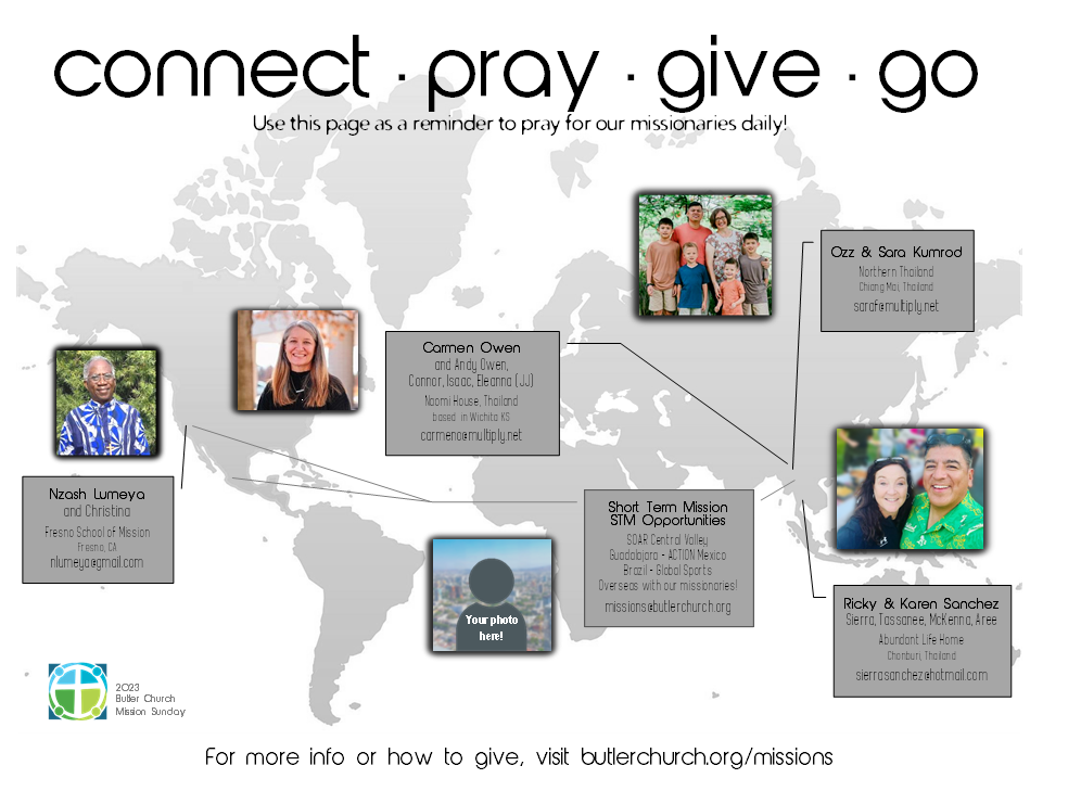 Para obtener más información, comuníquese con la oficina de la iglesia o misiones@butlerchurch.org