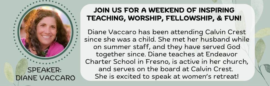 25-27 de abrilSi estás interesado, te recomendamos revisar los detalles del evento en el siguiente enlace y registrarte individualmente. Nuestra coordinadora de grupo para el retiro es Michelle Pauls. Puedes hablar con ella o comunicarte con el