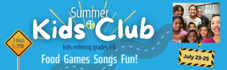 Join us for Kids Club! We are planning some activity days for kids this summer! Our Kids' Club will be the evenings of July 23-25; Tuesday-Wednesday-Thursday. Kids will enjoy God centered music, crafts, games, story time and much more.